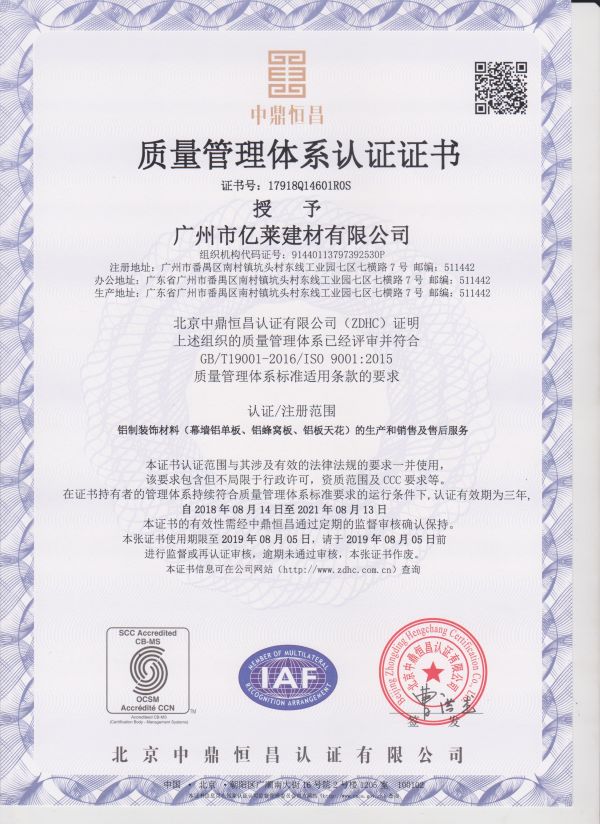 About us廣州市億萊建材有限公司廣州市億萊建材有限公司成立于2007年1月是一家專業(yè)設(shè)計、生產(chǎn)、銷售全系列鋁質(zhì)天花、集成吊頂、藝術(shù)天花板、非標(biāo)造型金屬天花、室內(nèi)外鋁單板及鋁蜂巢板幕墻、金屬裝飾工程配套材料的專業(yè)企業(yè);位于南中國經(jīng)濟(jì)強區(qū)珠江三角洲的廣州市番禺區(qū)(也是一個技術(shù)及資源集中的專業(yè)金屬裝飾材料生產(chǎn)基地);億萊公司屬下品牌:“YILAI億萊”金屬天花&幕墻 及 家居整體吊頂;公司具有年產(chǎn)鋁質(zhì)天花300萬平方米,非標(biāo)金屬天花及鋁質(zhì)幕墻60萬平方米的生產(chǎn)能力。 |